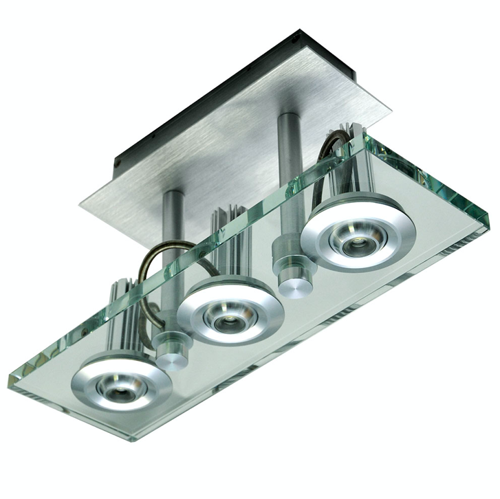 Glass 3 -kattovalaisimessa on kolme suunnattavaa LED-valopistettä, joiden ansiosta valo voidaan kohdistaa juuri haluttuihin kohtiin. 4100K värilämpötila tuottaa kirkkaan ja neutraalin valon, joka soveltuu erinomaisesti työskentelyyn ja yleisvalaistukseen.