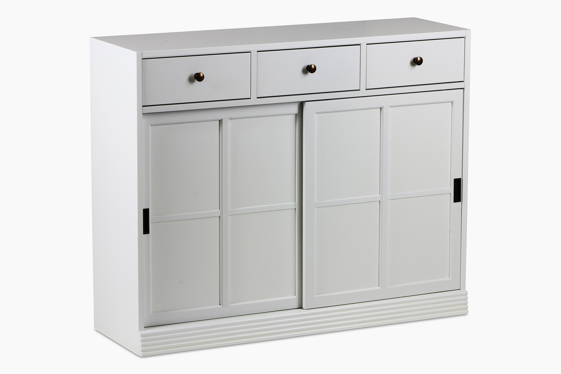 Gustav lipasto umpinaisilla liukuovilla ja kolmella vetolaatikolla tarjoaa runsaasti säilytystilaa, täydentäen maalaisromanttisen sisustuksen kauniilla ja harmonisella ilmeellään. Sen selkeälinjainen muotoilu sopii erinomaisesti niin olohuoneeseen, makuuhuoneeseen kuin eteiseenkin.