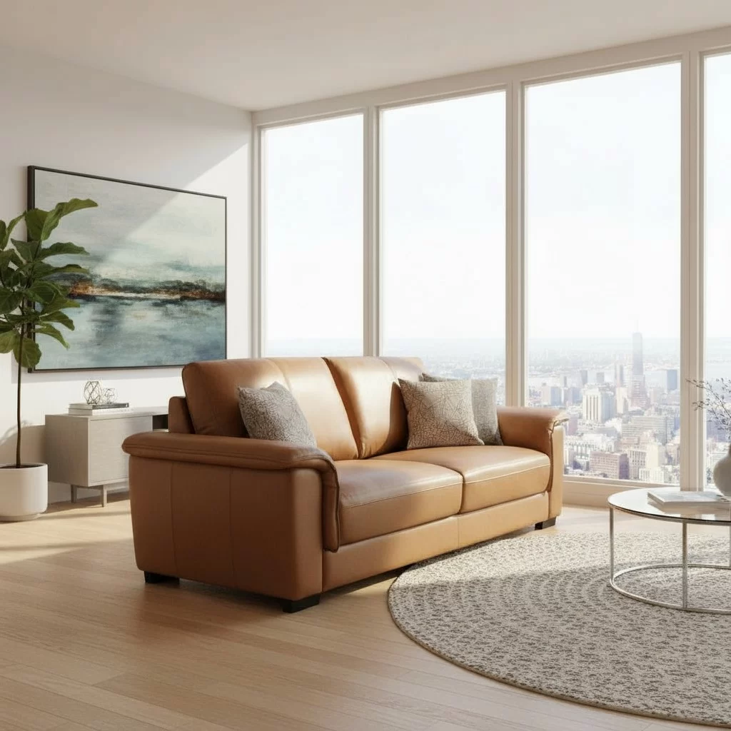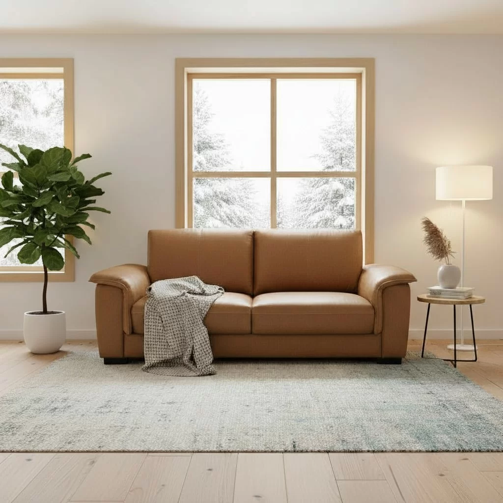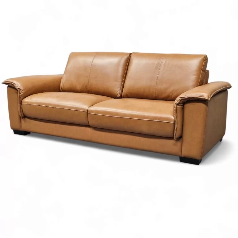 Kulutusosat on verhoiltu aidolla, korkealaatuisella nahalla, kun taas taka- ja sivuosissa käytetty keinonahka tekee sohvasta kevyemmän ja helpommin puhdistettavan. Tämä materiaaliyhdistelmä takaa sekä pitkäikäisyyden että käytännöllisyyden arjen vaatimuksiin.