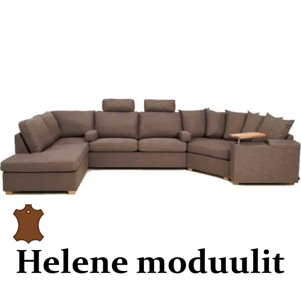 Helene sohva moduuleista on muunneltava ja ajattoman tyylikäs kokonaisuus, jonka modulaariset osat, laadukas nozag-jousitus ja HR35-pehmusteet tarjoavat miellyttävän mutta napakan istuinmukavuuden. Runsaat käsinoja-, syvyys-, jalkamalli- ja verhoiluvaihtoehdot sekä mahdollisuus valita useista nahkaväreistä tekevät siitä yksilöllisen ja pitkäikäisen sohvaratkaisun jokaiseen kotiin.