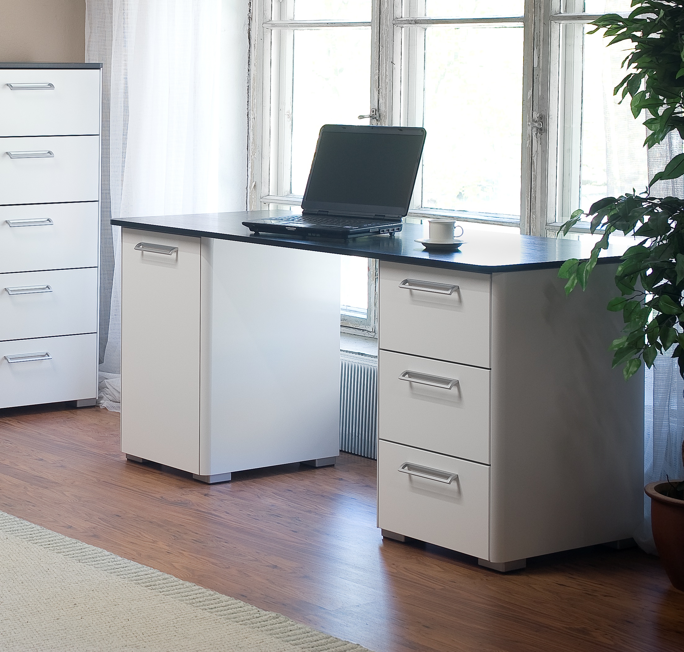 Vasemmalta löytyvä kaappi korkeussäädettävällä hyllyllä ja oikealla puolella olevat kolme tilavaa laatikkoa tarjoavat runsaasti säilytystilaa kaikille työvälineille ja papereille. Helmi kirjoituspöytä 7 auttaa pitämään työtilasi siistinä ja järjestyksessä – täydellinen ratkaisu kotiin tai toimistoon.