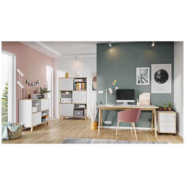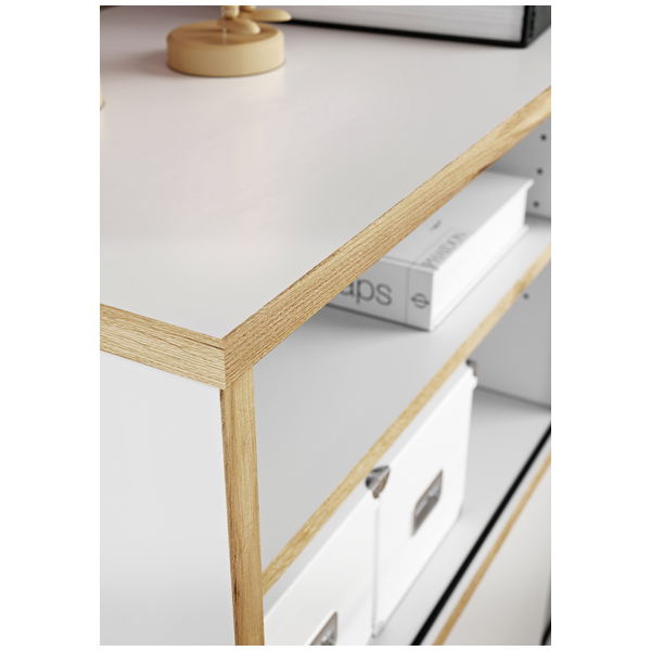 Helsinki Senkki 4170 hurmaa upealla skandinaavisella muotoilullaan, jossa valkoisen raikkaus ja Navarra tammen lämpö yhdistyvät harmoniseksi kokonaisuudeksi. Tyylikäs ja selkeälinjainen ilme sopii täydellisesti niin moderniin kotiin kuin perinteisempäänkin sisustukseen.