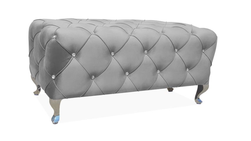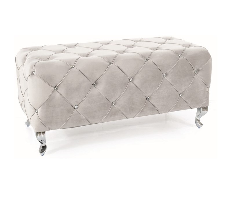 Tyylikkäät strassikoristukset tuovat ripauksen näyttävyyttä ja tekevät penkistä todellisen katseenvangitsijan. Tämä yksityiskohta nostaa huoneen sisustuksen uudelle tasolle ja lisää hienostunutta glamouria arkeen.