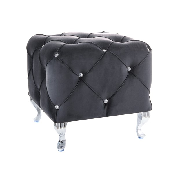 Tyylikkäät strassiyksityiskohdat ja krominväriset metallijalat tuovat rahille ripauksen luksusta ja modernia näyttävyyttä. Useat upeat värivaihtoehdot – vaaleanharmaa, harmaa, musta ja sininen – antavat mahdollisuuden valita juuri omaan kotiisi sopivan sävyn.