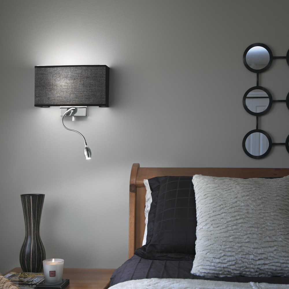 Saatavana useissa värikokonaisuuksissa – musta, valkoinen tai beige kromisilla yksityiskohdilla tai täysin yksivärisenä – Hotel AP2 on helppo sovittaa eri sisustustyyleihin. E27-kanta mahdollistaa valon sävyn ja kirkkauden valinnan, ja integroitu LED-lukuvalo tuo energiatehokasta käyttömukavuutta arkeen.