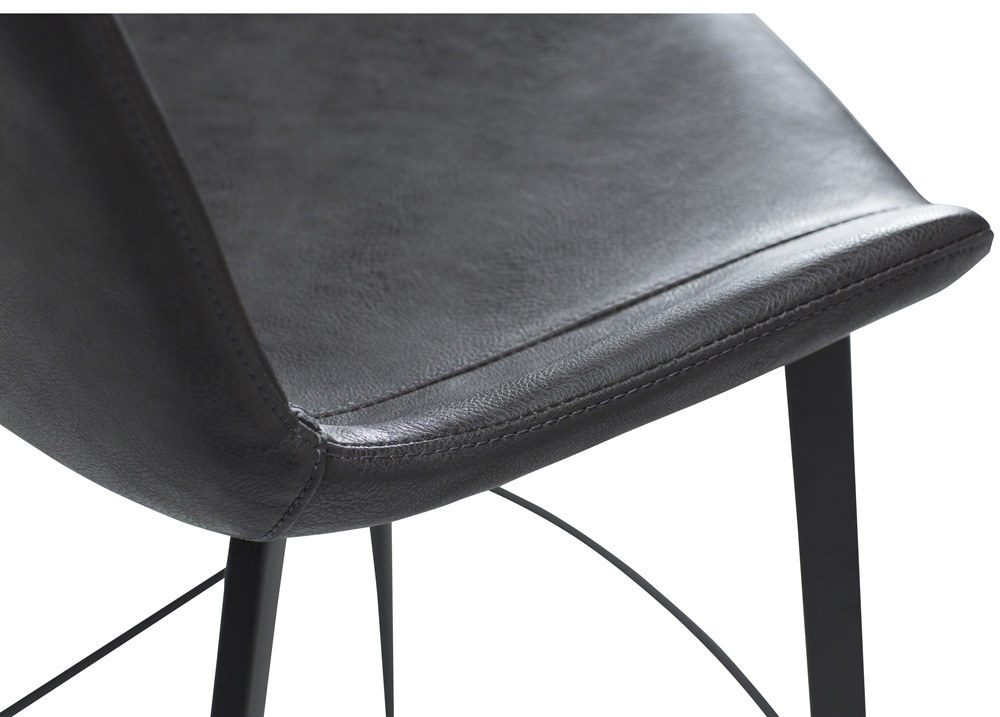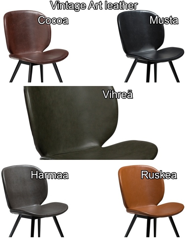 Pehmustettu istuin tarjoaa erinomaisen käyttömukavuuden, ja verhoiluvaihtoehdot – musta, ruskea sekä vintage-sävyt musta, harmaa ja cocoa – sopivat monenlaisiin sisustuksiin. Pulverimaalatut mustat metallijalat tuovat tuolille ryhdikkään ja kestävän rakenteen, joka toimii sekä kotikeittiössä että baarikorkuisen pöydän ääressä.