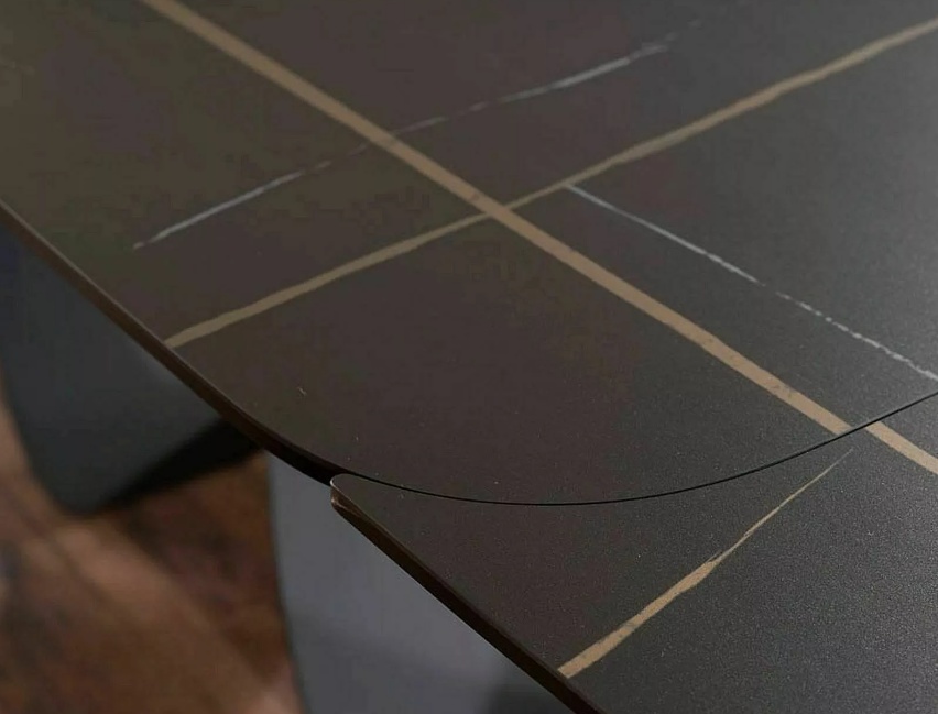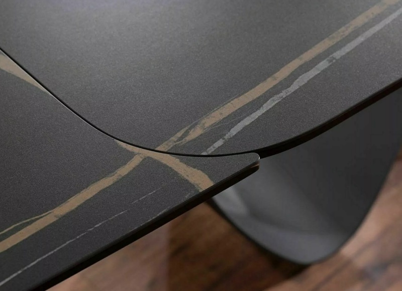Infinity ruokapöytä Azario Black tuo sisustukseen modernia eleganssia mattamustan marmorikuvioidun kannen ja tukevan mustan jalan ansiosta. Sen näyttävä ilme sopii täydellisesti nykyaikaisiin koteihin ja toimii huoneen keskipisteenä.