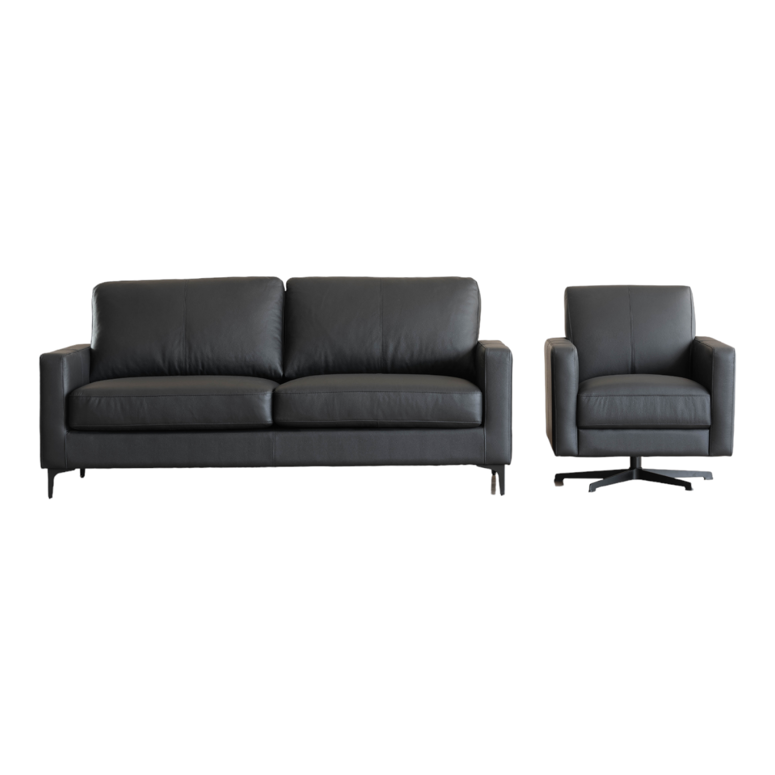 Tucsonin istuin on suunniteltu erityisen pehmeäksi ja tukevaksi. Runsas vaahtomuovi ja silikonoitu huonekaluvanu tarjoavat ylellisen istuinmukavuuden, joka kestää käyttöä vuodesta toiseen. Mustaksi maalattu metallijalka tuo tuoliin tukevuutta ja modernia kontrastia, kun taas runko massiivipuusta ja vanerista takaa kestävyyden.
