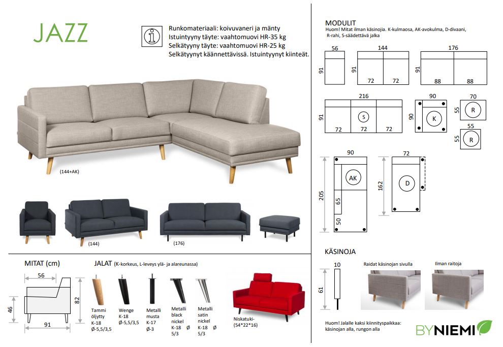 | 164 cm | 91 cm | 82 cm | cm | cm | cm | cm | 46 cm | cm | 56 cm | 18 cm | cm | cm | cm | cm | cm | cm | cm | Istuimissa zigzag jousitus, istuintyyny vaahtomuovi 35HR, Jämäkkä istuintyyny, Kiinteä istuintyyny | Käännettävä selkätyyny | cm | cm | cm | cm | cm | cm | cm | cm | cm | cm | Cinema kangas, Suma kangas, Sundsvall kangas | Massiivipuu, Vaneri | cm | kg | cm | cm | cm |