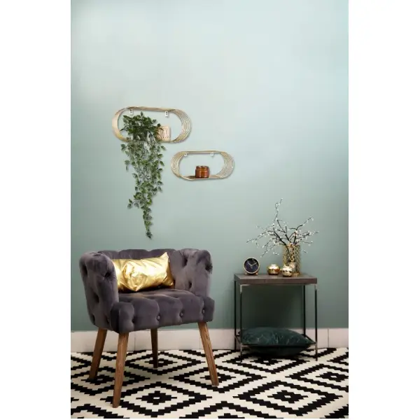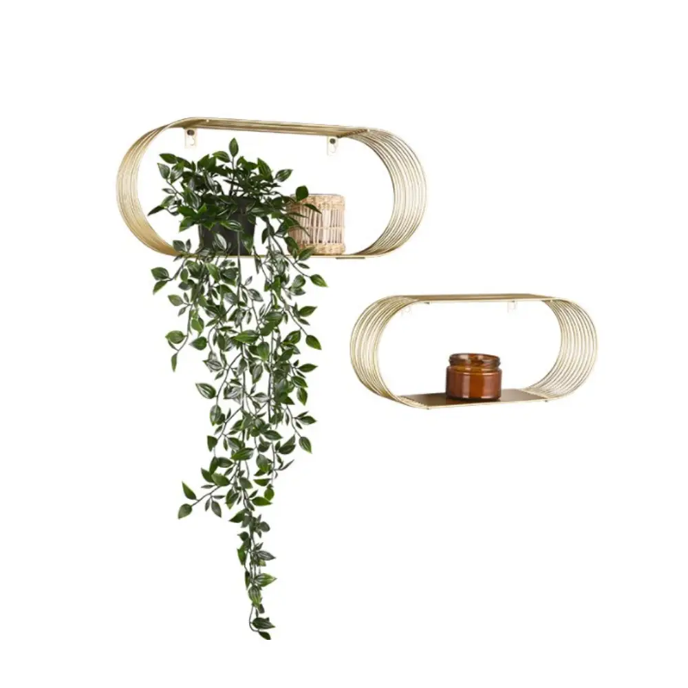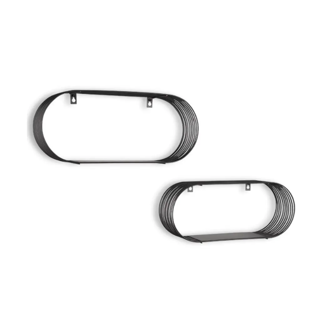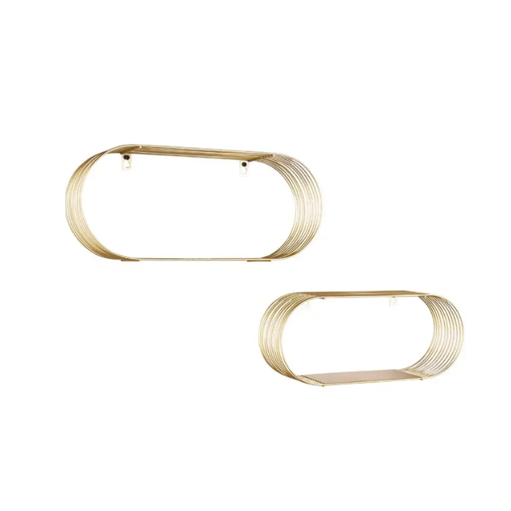 • Tyylikäs metallinen Jessica seinähyllysetti. Settiin sisältyy kaksi erikokoista hyllyä, jotka voit asettaa seinään haluamallasi tavalla. Hyllyä saatavana kultaisena tai mustana.