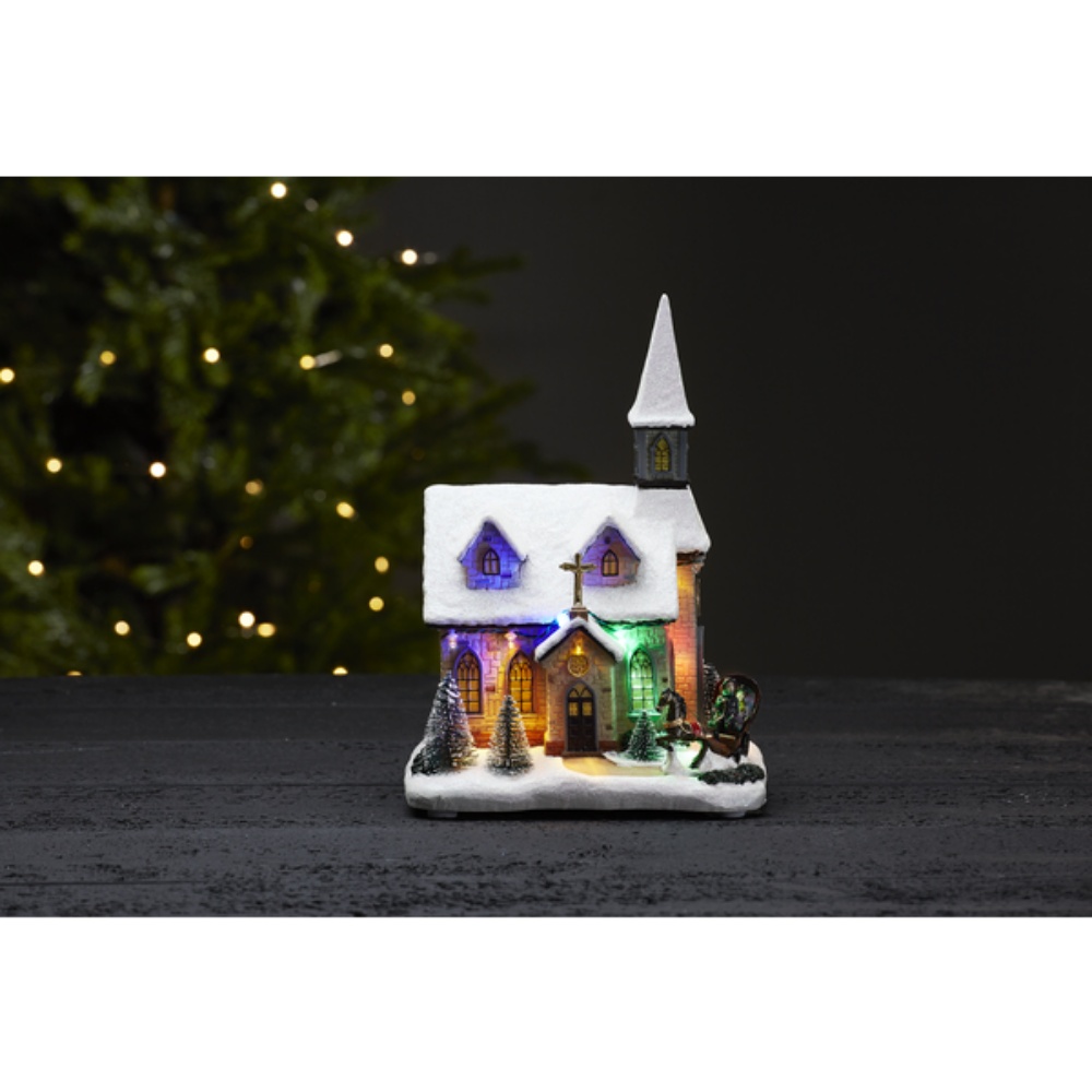 • Hieno jouluinen kirkko, joka tuo juhlan tunnelman kotiisi upeilla yksityiskohdillaan ja monivärisillä (RGB) valoillaan.