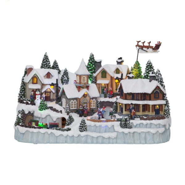 Jossa upeita erilaisia yksityiskohtia. Koristeessa 3 liikkuvaa osaa, sekä se soittaa 8 erilaista joululaulua. Valojen sävy on lämmin valkoinen. Koriste on tarkoitettu sisäkäyttöön.