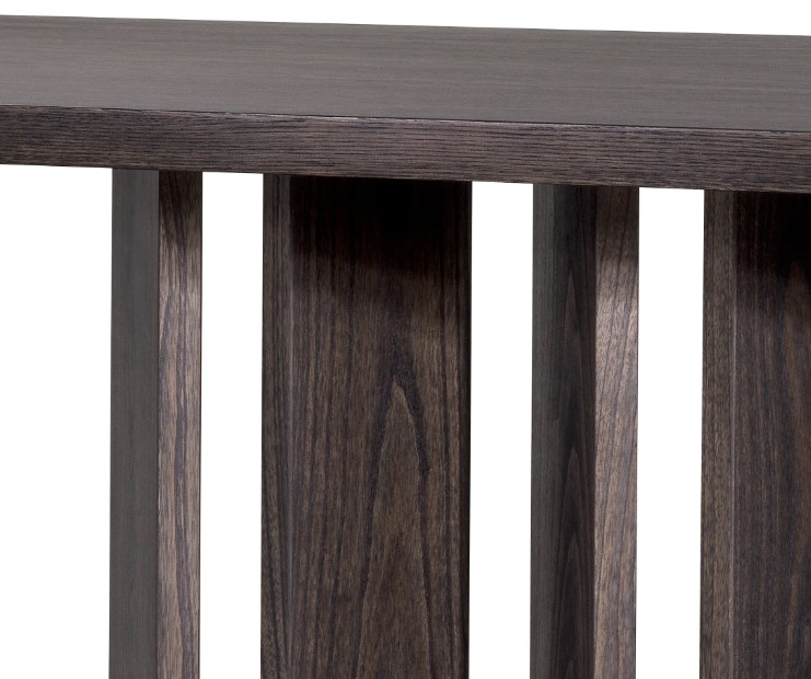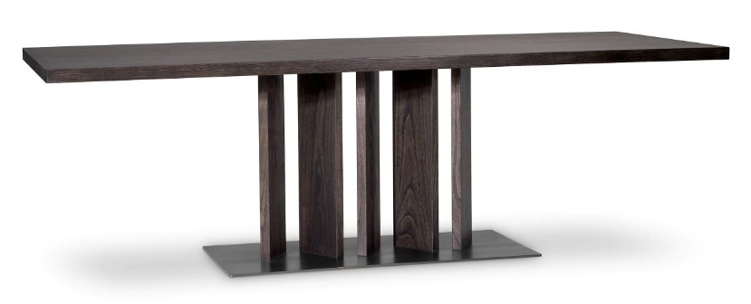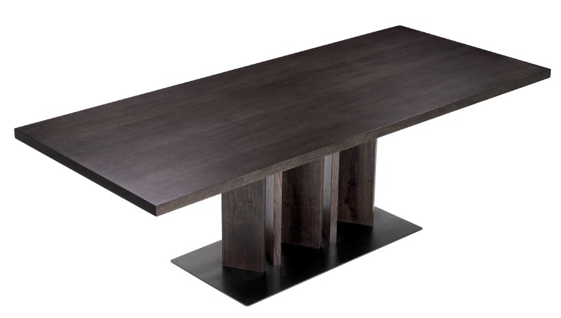 Julius-ruokapöytä tuo ruokailutilaasi hienostuneen ja ajattoman tyylin, jossa puun kauniit luonnolliset kuviot yhdistyvät näyttävään pronssiseen teräsjalustaan. Sen huoliteltu viimeistely tekee pöydästä elegantin keskipisteen, joka korostaa tilan arvokkuutta ja modernia ilmettä.