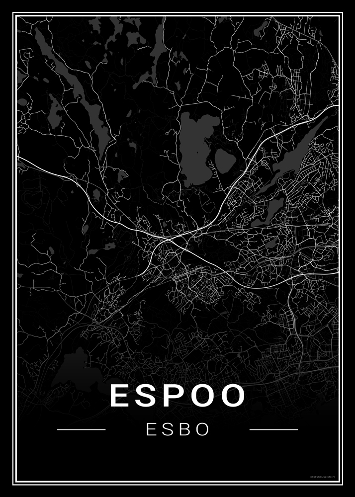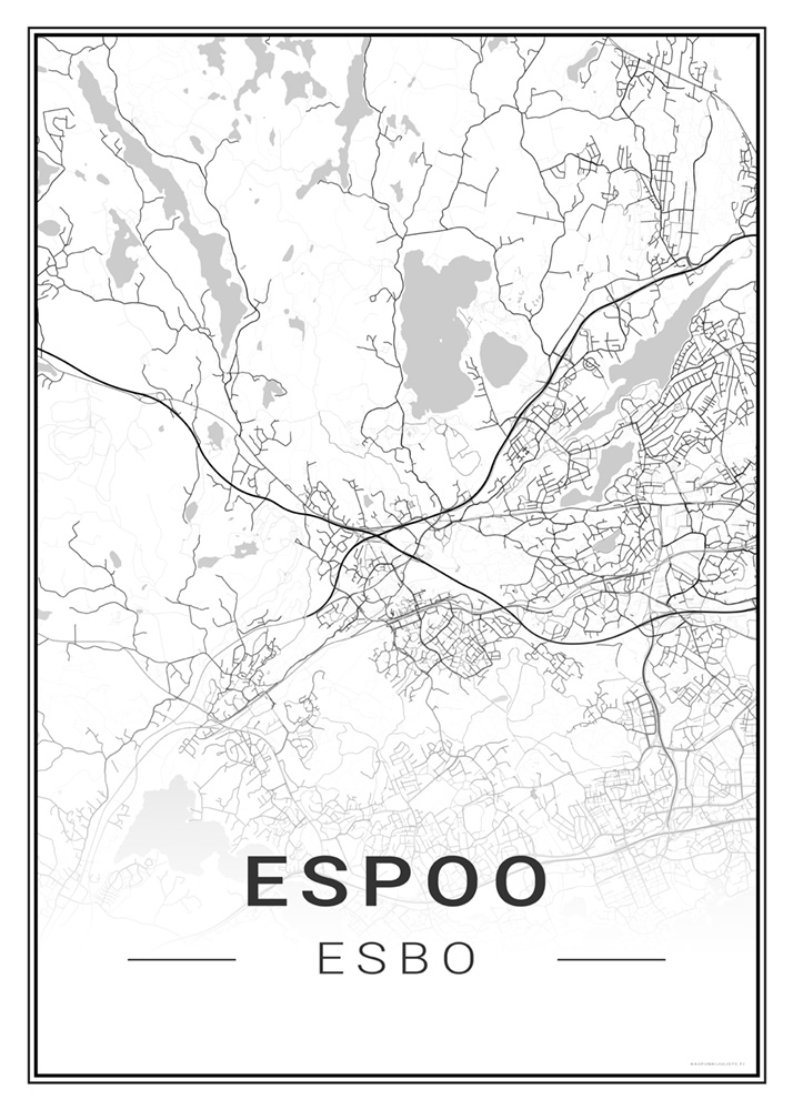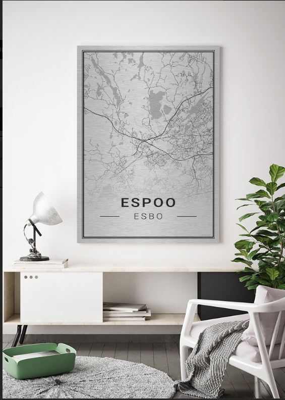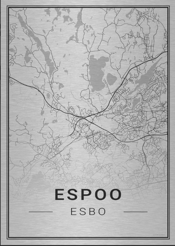 Espoo kaupunkijuliste valmistetaan Suomessa ja painetaan laadukkaalle 140-grammaiselle mattapintaiselle paperille. Juliste toimitetaan ilman kehyksiä postitusputkessa. Mikäli et löydä etsimääsi kaupunkia tai haluat julisteen eri tekstillä, voit tilata kustomoidun julisteen mistä tahansa Suomen kaupungista, kunnasta tai kylästä asiakaspalvelun kautta.