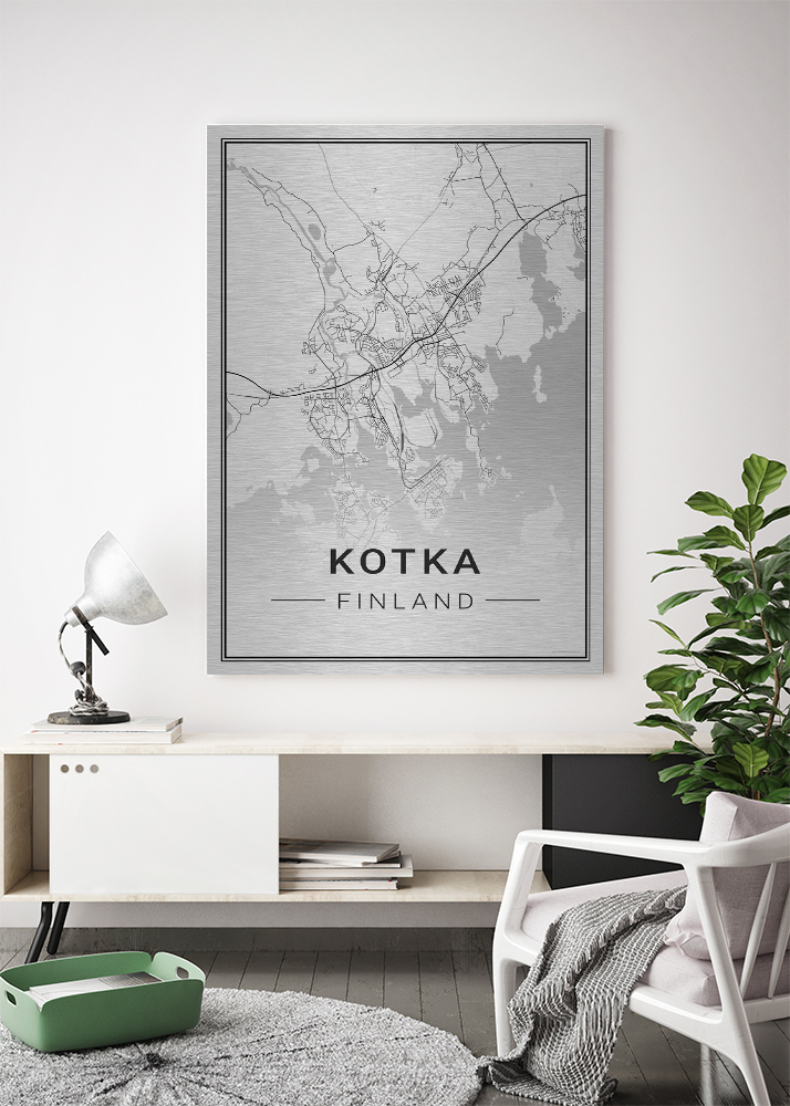 Kotka-kaupunkijuliste tuo sisustukseen Suomenlahden rannalla sijaitsevan satama- ja teollisuuskaupungin vahvan identiteetin. Mustavalkoinen ilme korostaa Kotkan erikoislaatuista kaupunkikuvaa, jossa rikkonainen rannikko, saaristo, Kymijoen kuohut ja vaihteleva rakennuskulttuuri muodostavat elävän ja modernin kokonaisuuden. Juliste huokuu urbaania merenrantakaupungin tunnelmaa ja kertoo tarinaa kaupungista, jossa meri on aina läsnä.