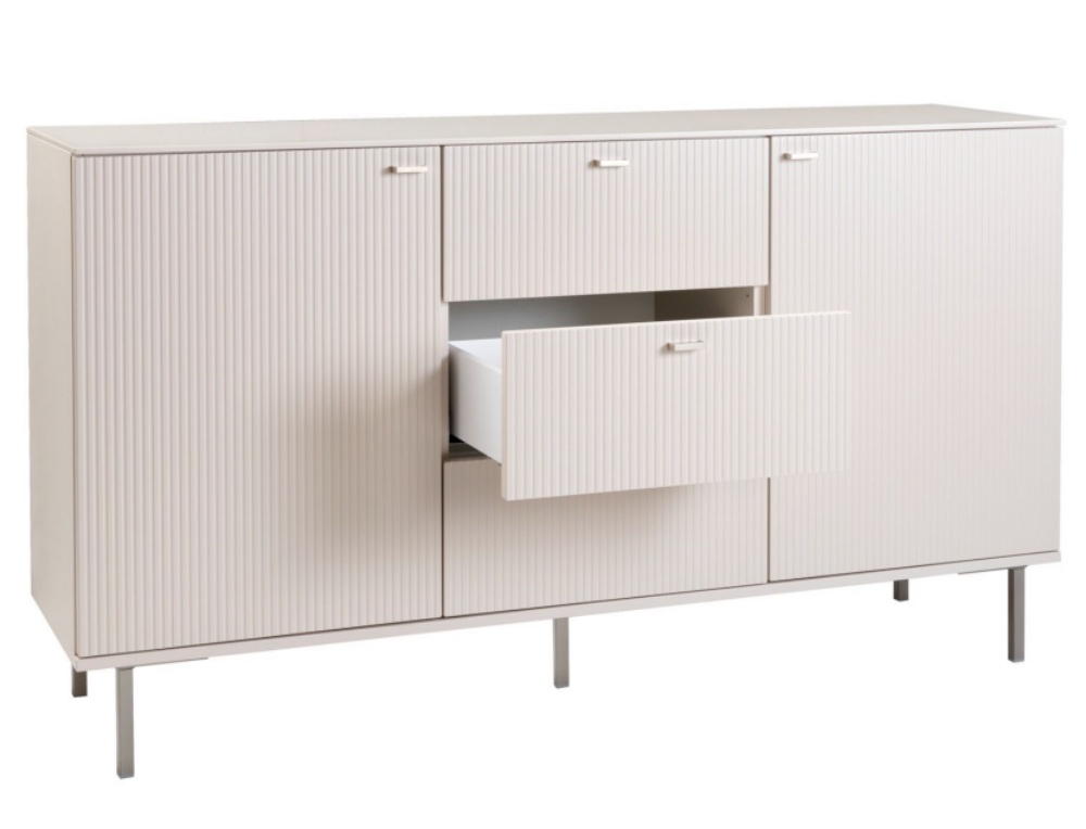 Kotimainen Kaura-senkki hurmaa modernilla ilmeellään ja laadukkaalla viimeistelyllä. Kolme laatikkoa ja kaksi ovea tarjoavat runsaasti säilytystilaa, kun taas greige-sävy ja tyylikäs pystyuritus tuovat tilaan harmonista ja ajattoman eleganttia ilmettä. Tämä senkki on täydellinen valinta, kun haluat yhdistää käytännöllisyyden ja muotoilun.