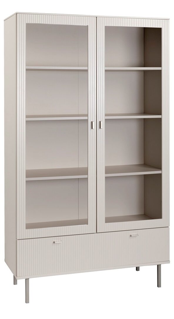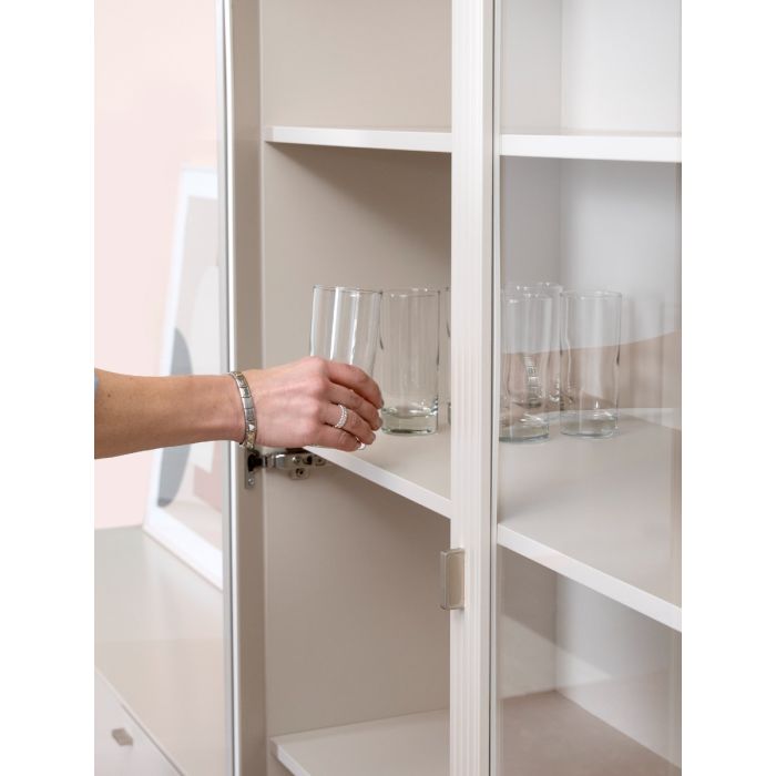 Kotimainen Kaura-vitriini on tyylikäs ja toimiva säilytysratkaisu, joka tuo esille kodin parhaat yksityiskohdat. Karkaistu lasi, laadukkaat materiaalit ja greige-sävy luovat harmonisen ja elegantin kokonaisuuden. Push-to-open -mekanismi ja valmis kokoonpano tekevät Kaura-vitriinistä helpon, kestävän ja näyttävän valinnan moderniin kotiin.