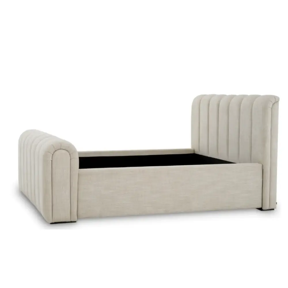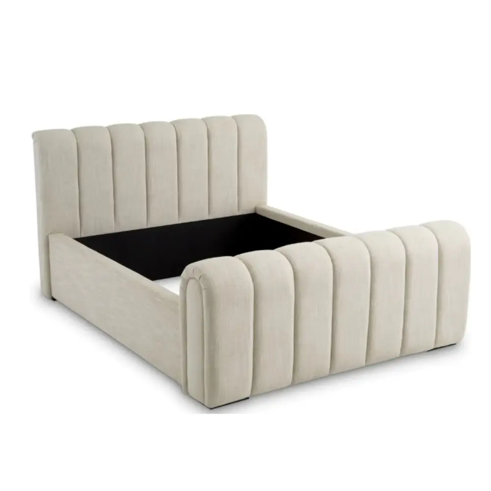 Kayden-sänkykehikko yhdistää hienostuneen beigen kankaan ja modernin, selkeälinjaisen muotoilun. Se luo makuuhuoneeseesi ylellisen ja rauhallisen tunnelman, jossa eleganssi ja mukavuus kohtaavat täydellisessä tasapainossa.