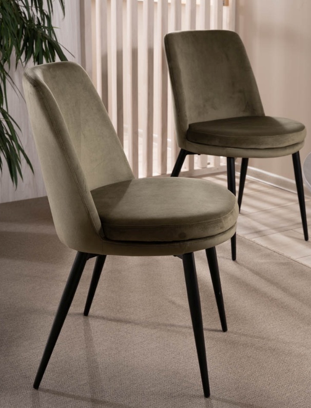 Kayla-tuoli tuo ruokailutilaasi modernia eleganssia yhdistämällä kevyen metallirungon ja pehmeän samettikangasverhoilun. Sen selkeälinjainen ulkonäkö tekee siitä ajattoman ja helposti erilaisiin sisustuksiin sopivan valinnan.