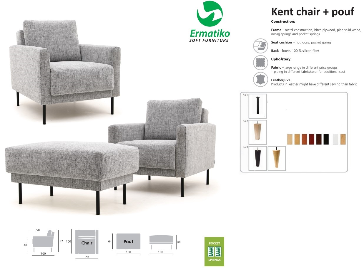 Kent rahi tarjoaa napakan ja miellyttävän istuinmukavuuden pussijousituksen sekä laadukkaiden pehmusteiden ansiosta, ja sen tukeva massiivipuu/vanerirunko yhdistettynä korkeisiin jalkoihin luo ilmavan ja kestävän kokonaisuuden. Rahin voi verhoilla neljällä eri kankaalla tai useilla muilla vaihtoehdoilla, jolloin se on helppo sovittaa täydellisesti omaan sisustukseen.