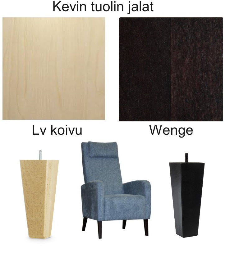 Kevin-nojatuoli on verhoiltu laadukkaalla Cinema- tai Sundsvall-kankaalla, jotka ovat sekä kestäviä että helppohoitoisia. Käsinojat ja jalat ovat massiivipuuta, ja ne voi valita kahdessa sävyssä – koivu tai wenge – jotta tuoli sulautuu kauniisti kodin sisustukseen. Toimitus tapahtuu kätevästi valmiiksi koottuna, joten voit ottaa tuolin heti käyttöön.