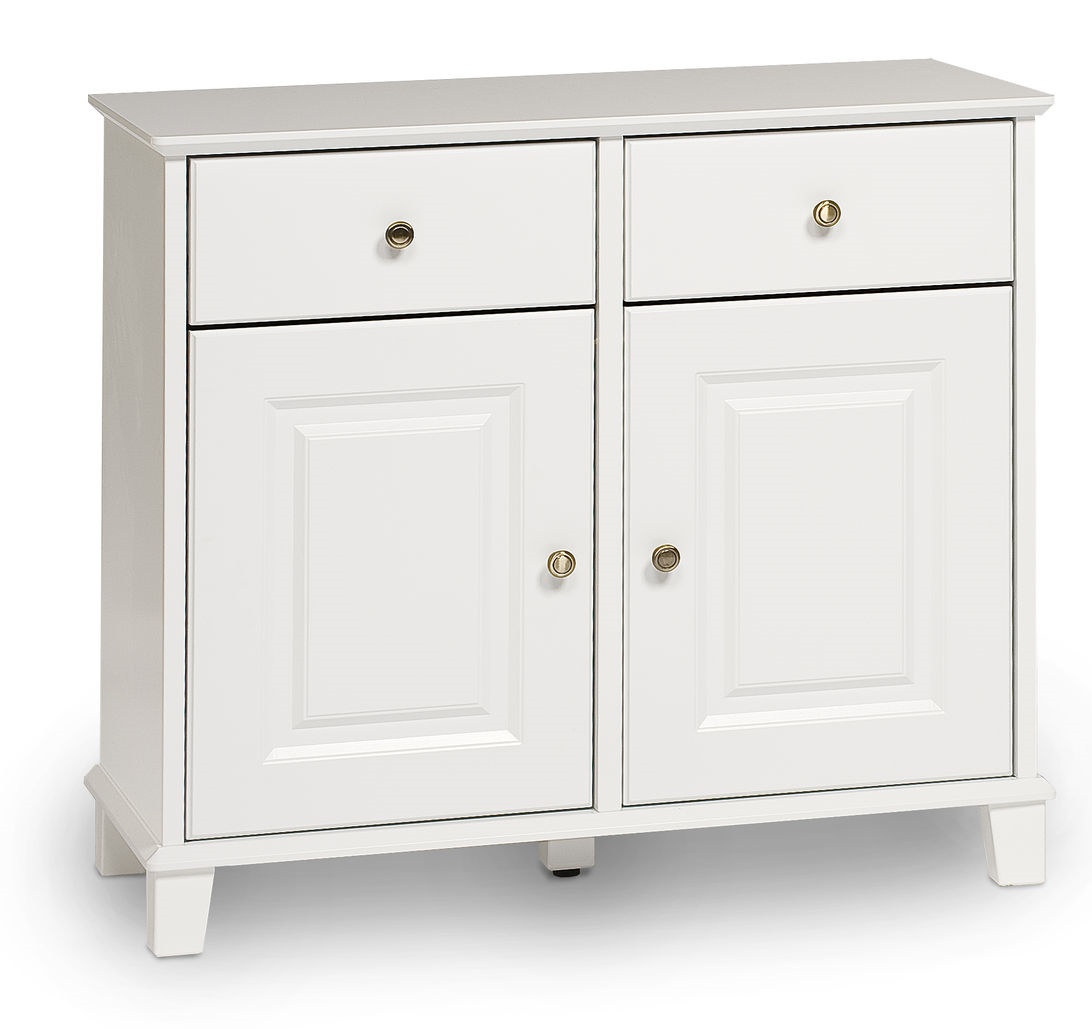 Klaara lipastokaappi 19 on kotimainen ja tyylikäs säilytyskaluste, jossa on kaksi kaappia ja kaksi laatikkoa. Valkoinen runko, messinginväriset vetimet ja neljä kansivaihtoehtoa tekevät siitä ajattoman ja käytännöllisen valinnan joka kotiin.