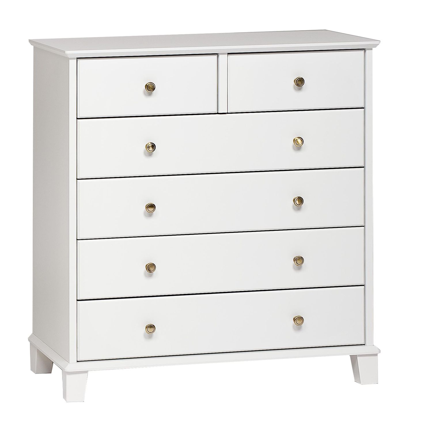 Klaara Lipasto 5 yhdistää perinteisen suomalaisen kalustemuotoilun ja modernin tyylikkyyden. Valkoinen runko ja messinginväriset nuppivetimet luovat hienostuneen ilmeen, joka sopii saumattomasti niin klassiseen kuin skandinaaviseenkin sisustukseen.