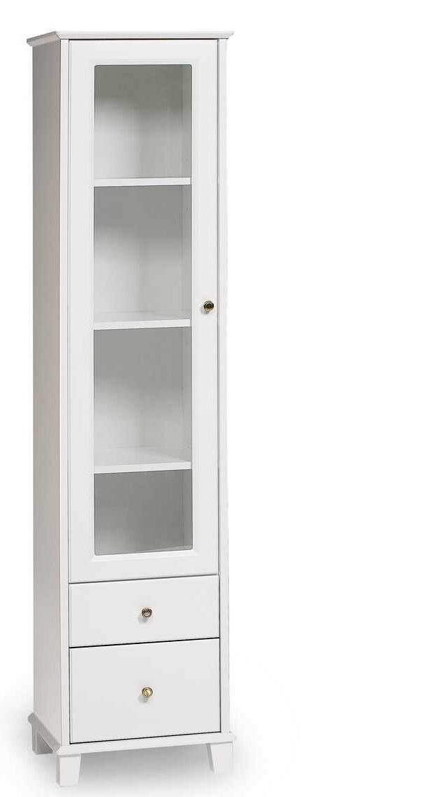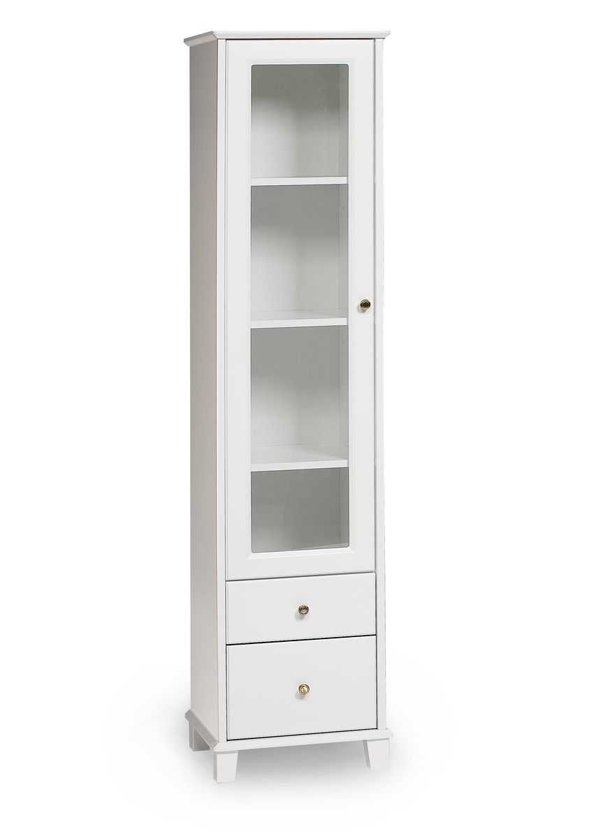 Vitriinissä on kolme korkeussäädettävää hyllyä ja kaksi vetolaatikkoa, jotka tarjoavat runsaasti säilytystilaa sekä koriste-esineille että arjen tarvikkeille. Voit valita lasi- tai umpioven sekä oven kätisyyden asennuksen yhteydessä – näin vitriini mukautuu täydellisesti kotisi tilaan ja tarpeisiin.