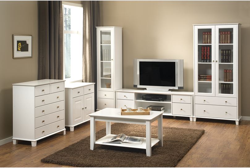 Klaara vitriini 13 yhdistää perinteisen estetiikan ja modernin käytännöllisyyden, tuoden kotiisi rauhallisen ja elegantin ilmeen. Valkoinen runko ja messinginväriset nuppivetimet viimeistelevät vitriinin klassisen ulkonäön, joka sopii täydellisesti monenlaiseen sisustukseen.