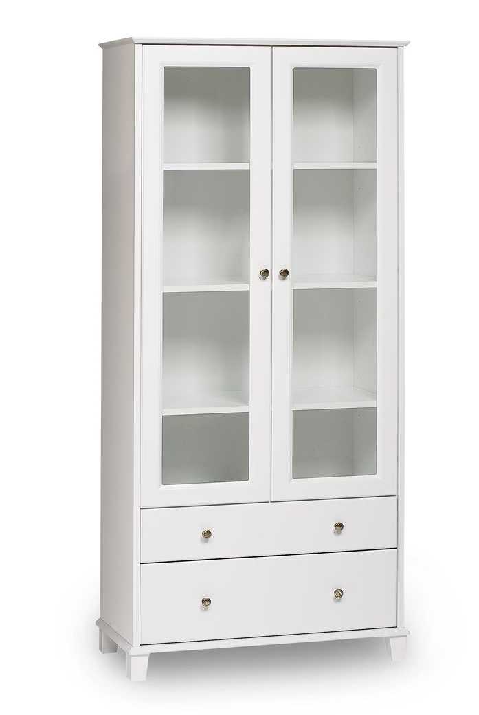Vitriinissä on kolme korkeussäädettävää hyllyä ja kaksi vetolaatikkoa, jotka tarjoavat runsaasti säilytystilaa niin arjen tarvikkeille kuin kauniille esineille. Voit valita kirkkaan lasioven tai umpioven, mikä tekee vitriinistä helposti muokattavan oman tarpeesi mukaan.