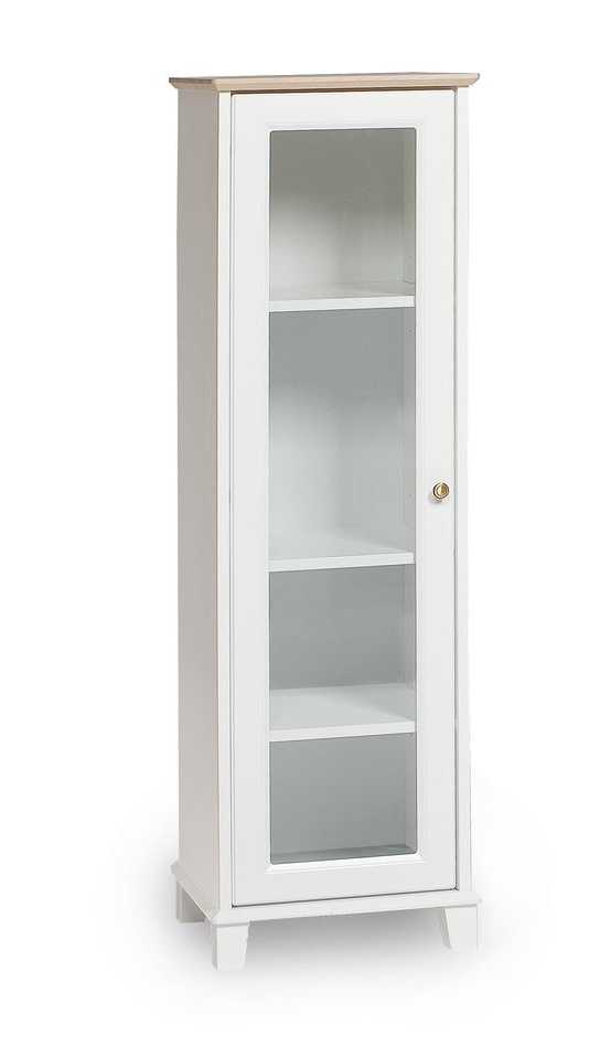 Korkeussäädettävä ylin hylly ja valittavissa oleva oven kätisyys tekevät vitriinistä monikäyttöisen ja helposti sovitettavan erilaisiin tiloihin. Vitriini tarjoaa runsaasti säilytys- ja esillepanotilaa, pitäen kodin siistinä ja tyylikkäänä.