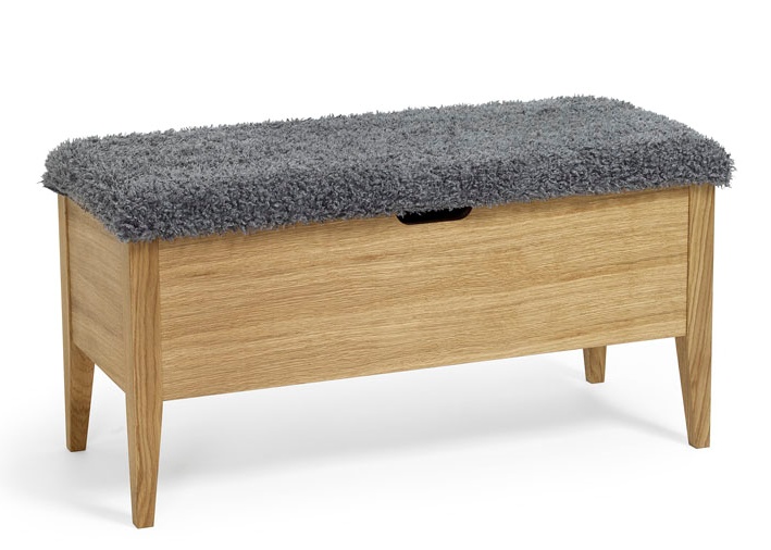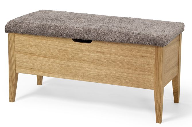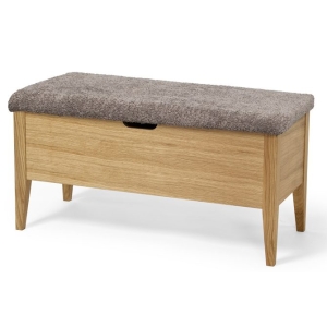 Pehmustetun istuimen alla sijaitsee avattava säilytyslaatikko, jossa on kaksi siirreltävää väliseinää. Näiden avulla voit muokata säilytystilan tarpeidesi mukaan esimerkiksi kengille, asusteille tai lasten tarvikkeille. Käytännöllinen rakenne pitää eteisen siistinä ja tavarat helposti saatavilla.