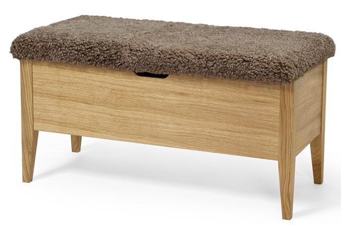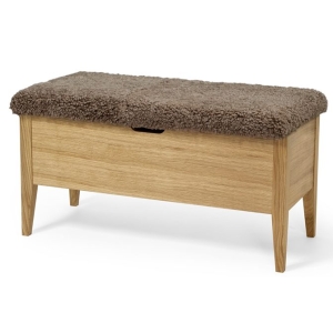 Runko on valmistettu öljytystä massiivitammesta ja MDF-levystä, mikä takaa tukevuuden ja pitkäikäisyyden. Pehmuste on saatavana useassa viimeistellyssä vaihtoehdossa: beige kangas, harmaa lammasturkisjäljitelmä tai ylellinen ruskea aito lampaan turkki. Penkki toimitetaan valmiiksi koottuna, joten se on heti käyttövalmis. Mitat 92 × 42 × 46 cm tekevät siitä tilavan mutta selkeälinjaisen kokonaisuuden.