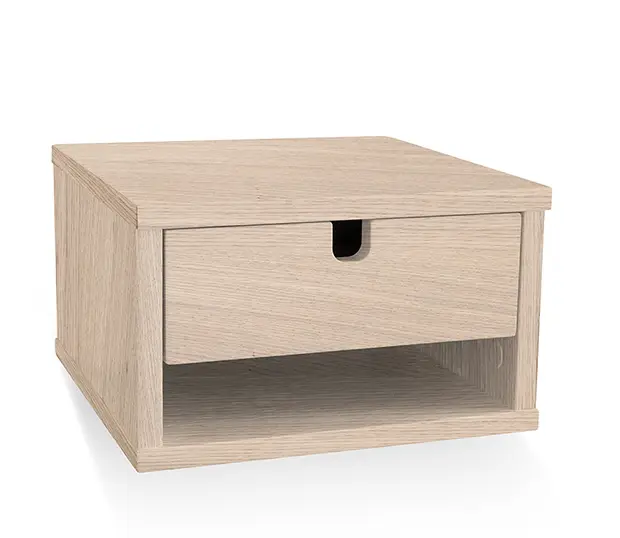 Klinte seinäänkiinnitettävä yöpöytä on käytännöllinen ja tyylikäs valinta, kun haluat säilyttää makuuhuoneessa ilmavan ja siistin ilmeen. Seinään kiinnitettävä rakenne vapauttaa lattiatilaa ja tekee kokonaisuudesta modernin ja kevyen.