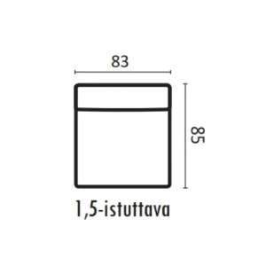 | cm | cm | 85 cm | cm | cm | cm | cm | 46 cm | cm | 54 cm | 17 cm | cm | cm | cm | cm | cm | cm | 13 cm | Jämäkkä istuintyyny, Muotoonvalettu kylmävaahtomuovi, Vanu, Verhoilu ei ole irrotettavissa | Vaahtomuovi HR25EP, Ylellisen pehmeä vanutyyny, Verhoilu ei ole irrotettava | cm | cm | cm | cm | cm | cm | cm | cm | cm | cm | Alpine kangas, Board kangas, Hali Hali kangas, Leaf kangas | Jalat massiivipuuta, Huonekalukangas verhoilu, Vaneri | Huonekalukangas verhoilu, Jalat massiivipuuta, Jalat metallia, Massiivipuu, Vaneri | Soft-Kaluste värit | cm | Runkotakuu 10 Vuotta | Tilaustuote | Toimitus moduulit omana pakettina, Toimitus koottuna - jalkojen kiinnitys | kg | Suomi | cm | cm | cm | Saatavana erikoismittaisena kysy lisää asiakaspalvelusta. |