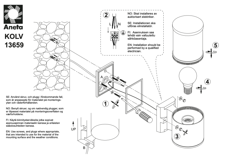 Alumiinirunko ja IP44-suojaus takaavat, että valaisin kestää vaihtelevia sääolosuhteita luotettavasti. E27-kanta mahdollistaa valonlähteen valinnan omien tarpeiden mukaan, ja kompakti koko tekee valaisimesta helpon sijoittaa myös pienempiin ulkotiloihin.