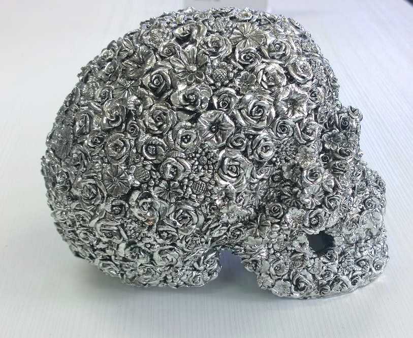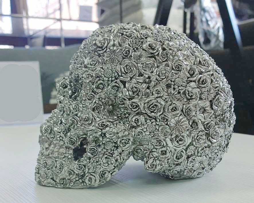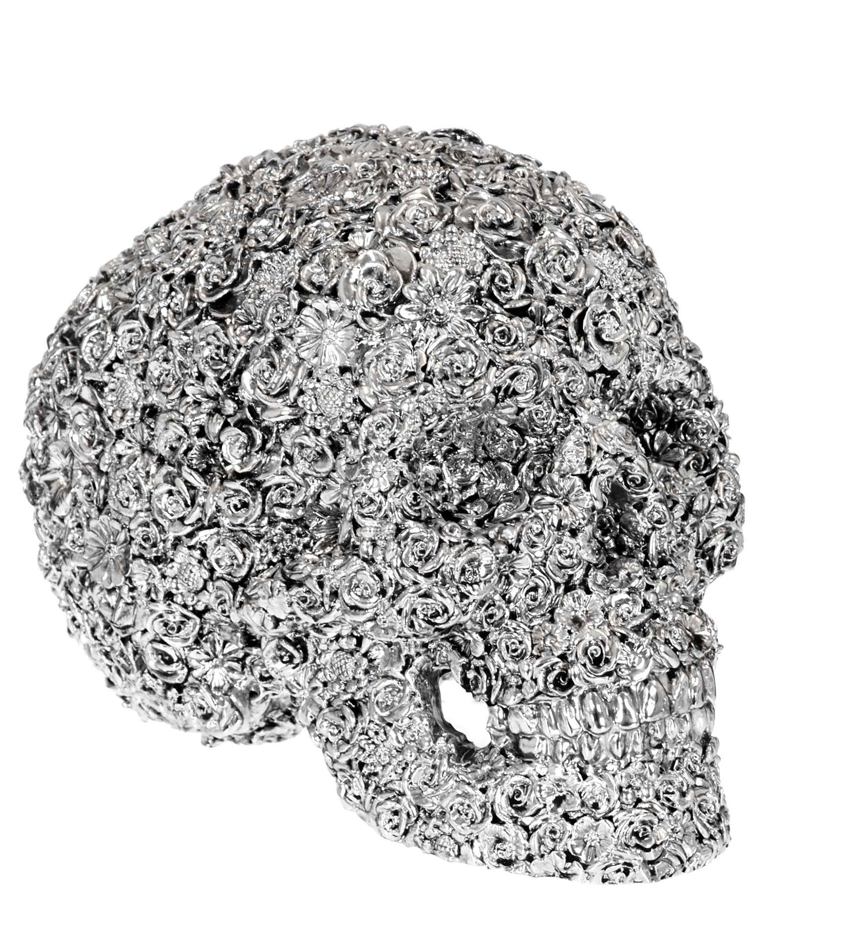 Koriste Pääkallo – Ruusu tuo kotiin rohkeaa eleganssia hopeisella viimeistelyllään, joka heijastaa valoa kauniisti ja tekee siitä välittömän katseenvangitsijan. Sen uniikki design herättää kiinnostusta ja luo moderniin sisustukseen persoonallista särmää.