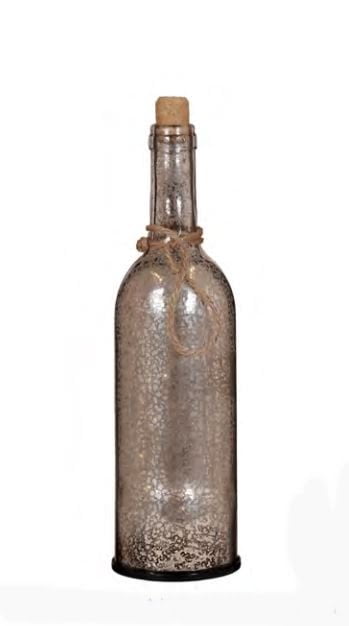 Pullo kirkasta lasia jossa hopean värisiä pieniä maalipisteitä, Luonnonkorkki ja Naru kaulassa tekee tästä vastustamattoman sisustuselementin joka sopii moneen tilaan. Toimii 2 AAA paristolla, ei sisälly hintaan.