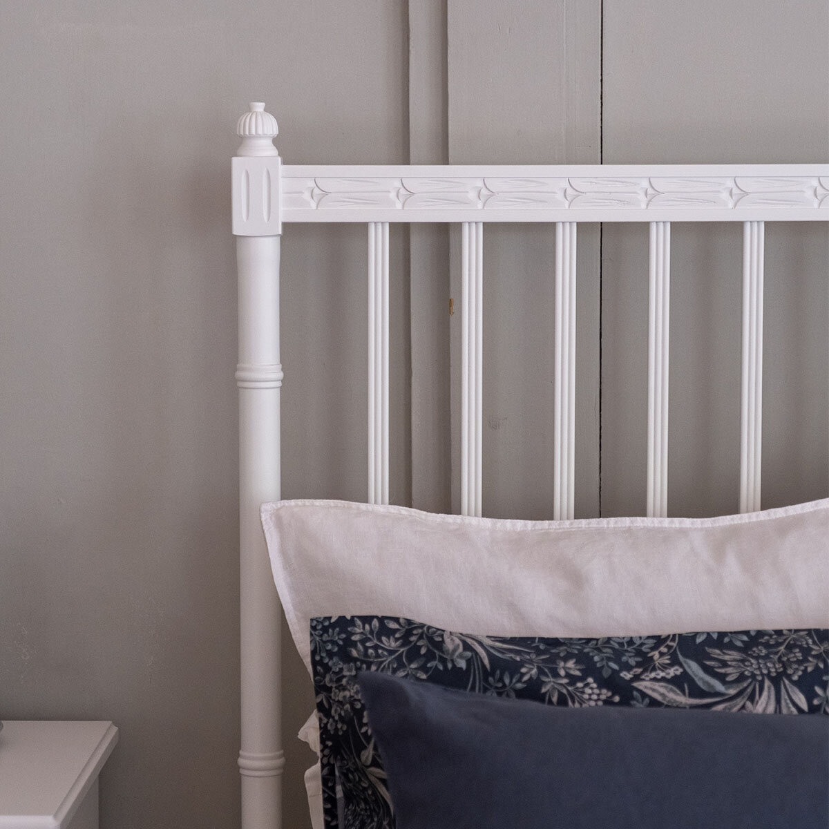 Kustavilaistyylinen divaanisänky hurmaa selkeillä linjoillaan ja hillityllä eleganssillaan. Vaaleat sävyt, kuten perinteinen helmenharmaa, tuovat tilaan valoisuutta ja raikkautta – ja halutessasi voit valita myös muita värivaihtoehtoja. Käsin tehty kullan- tai harmaanvärinen patinointi viimeistelee kokonaisuuden ja antaa sängylle arvokkaan, yksilöllisen ilmeen.