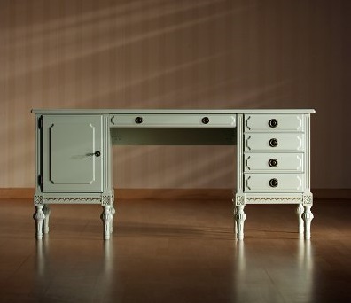 Pöytä on saatavilla useissa väreissä ja verhoiluissa, ja sen viimeistelyyn on saatavilla käsin maalattu kullan- tai harmaanvärinen patinointi, joka antaa kalusteelle yksilöllisen ja elegantin ilmeen. Kotimaiset Kustavilaiset kalusteet ovat laadukkaita tyylikalusteita, jotka on viimeistelty huolellisesti käsityönä.