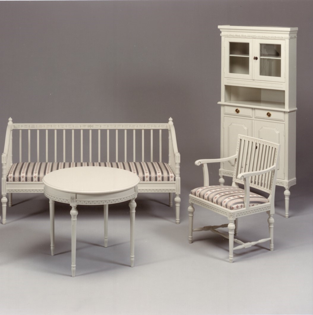 Sarjan tuotteet ovat saatavilla useissa väreissä ja verhoiluissa, ja halutessasi voit viimeistellä kaapin käsin maalatulla kullan- tai harmaanvärisellä patinoinnilla, joka korostaa kauniita yksityiskohtia.