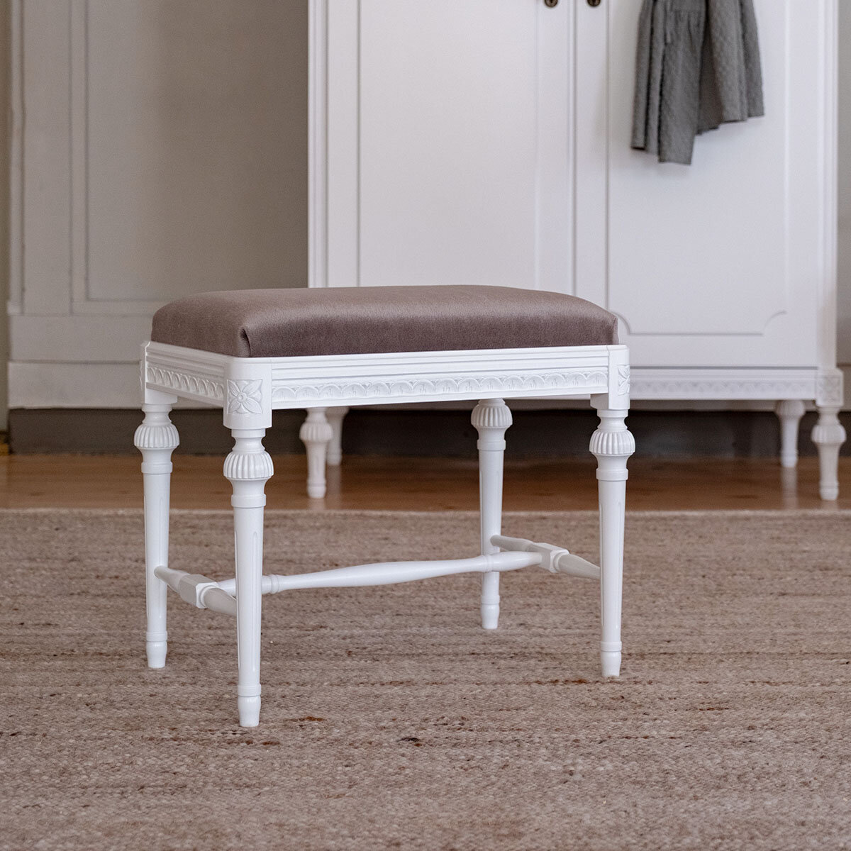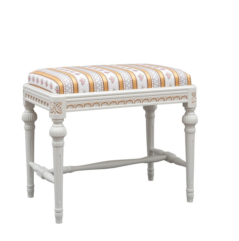 Kotimainen Kustavilainen rahi täydentää tyylikkäästi olohuoneen tai makuuhuoneen sisustusta ja toimii sekä istuimena, jalkarahina että kauniina sisustuselementtinä. Suomessa käsityönä valmistettu rahi on saatavana useissa eri väreissä ja verhoiluissa, ja sen ilmettä voi viimeistellä käsin maalatulla kullan- tai harmaanvärisellä patinoinnilla.