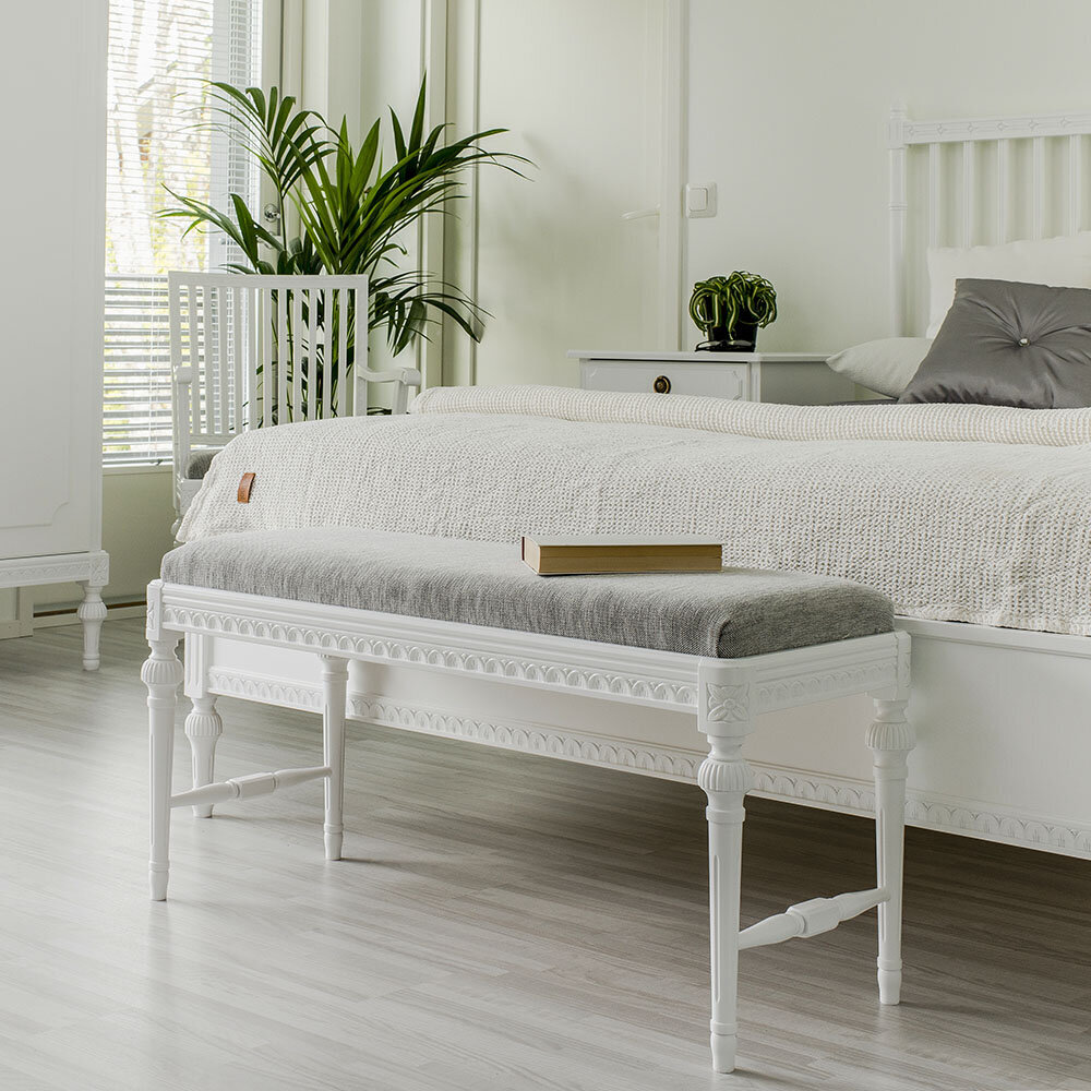 Kotimainen Kustavilainen rahi on laadukas ja monikäyttöinen tyylikaluste, joka toimii niin jalkarahina, lisäistuimena kuin sisustuksen katseenvangitsijana. Suomessa käsityönä valmistettu rahi on saatavana useissa väreissä ja verhoiluissa, ja sen ilmettä voi korostaa käsin maalatulla kullan- tai harmaanvärisellä patinoinnilla.