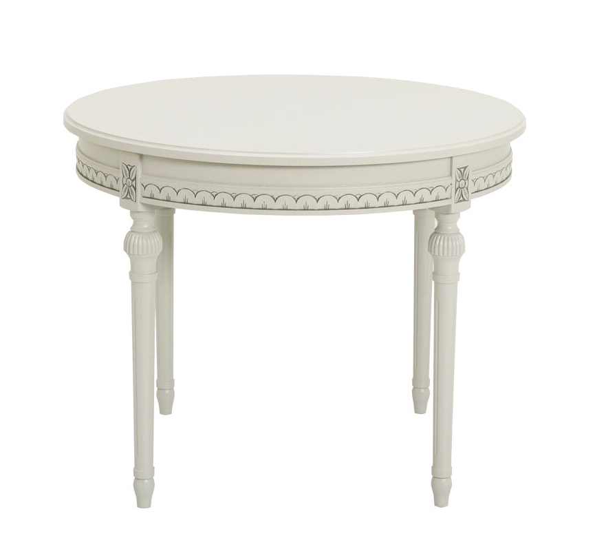 Sarjan tuotteet ovat saatavilla useissa väreissä, ja halutessasi pöydän voi viimeistellä käsin maalatulla kullan- tai harmaanvärisellä patinoinnilla, joka korostaa kauniita yksityiskohtia. Jos toivot pöytää muussa värissä, asiakaspalvelumme auttaa sinua löytämään sopivan ratkaisun.