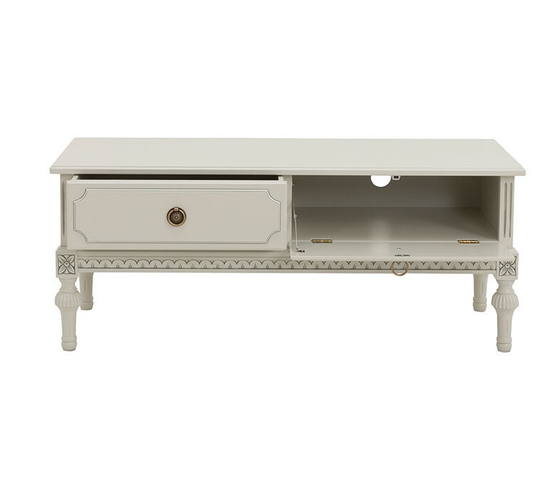 Sarjan tuotteet ovat saatavilla useissa väreissä ja verhoiluissa, ja lisähinnasta saat tv-tasoon käsin maalatun kullan- tai harmaanvärisen patinoinnin, joka korostaa sen yksityiskohtia upeasti.