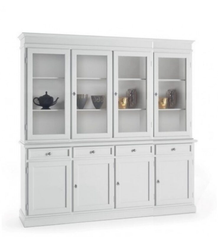 Kahdesta osasta koostuva vitriini tarjoaa kuusi kaappia ja puuhyllyt, jotka tekevät astioiden, koriste-esineiden ja muiden aarteiden järjestämisestä helppoa ja tyylikästä. Runsas säilytystila yhdistettynä harmoniseen muotoiluun tekee siitä käytännöllisen ja näyttävän valinnan.