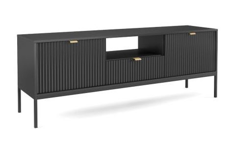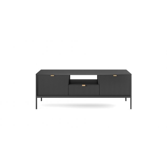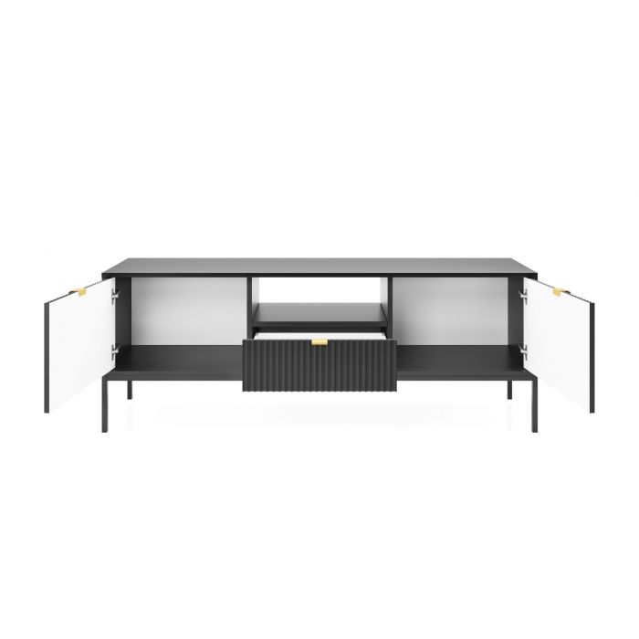 Latte tv-taso tuo sisustukseen kevyen ja tyylikkään ilmeen mustan värinsä sekä sirojen metallijalkojensa ansiosta. Laadukas 16 mm laminoitu runko ABS-reunanauhalla ja 18 mm MDF-etusarjat tekevät kokonaisuudesta kestävän ja viimeistellyn, ja etusarjojen kauniit urakuviot korostavat tv-tason yksilöllistä luonnetta.