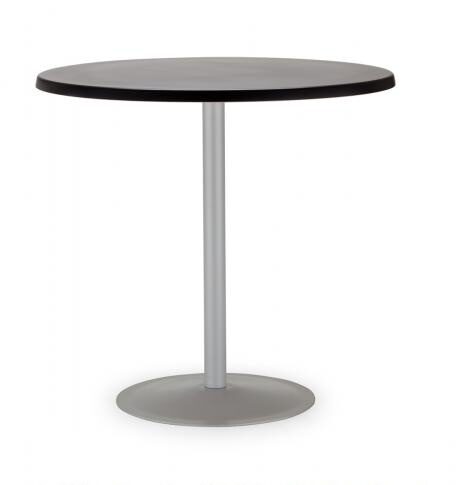 Pöydässä on tukeva metallinen trumpettijalka, joka varmistaa erinomaisen vakauden ja kestävyyden. Kansi on valmistettu mikrolaminaatista, jonka 25 mm ABS-reuna lisää suojaa ja viimeistelee ilmeen tyylikkäästi. Kannen halkaisijan voi valita kolmesta eri koosta – 60 cm, 70 cm tai 80 cm – jotta pöytä sopii täydellisesti tilan tarpeisiin.
