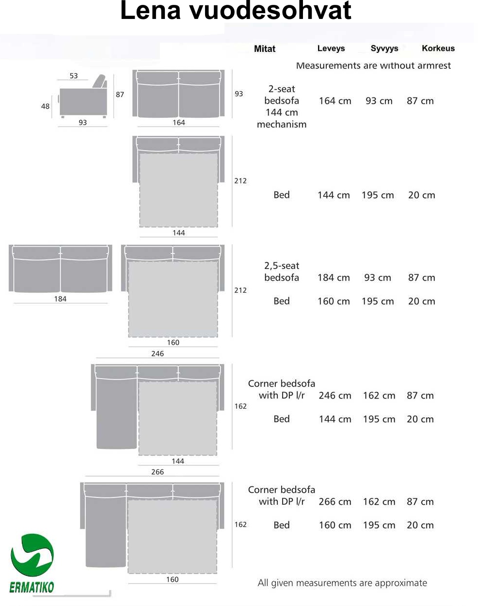 Lena vuodesohva 140 jenkkimekanismilla