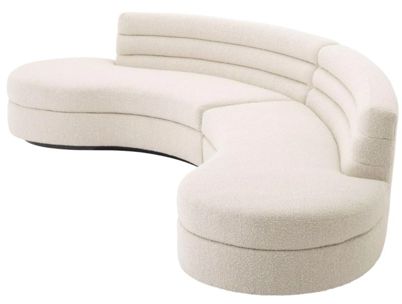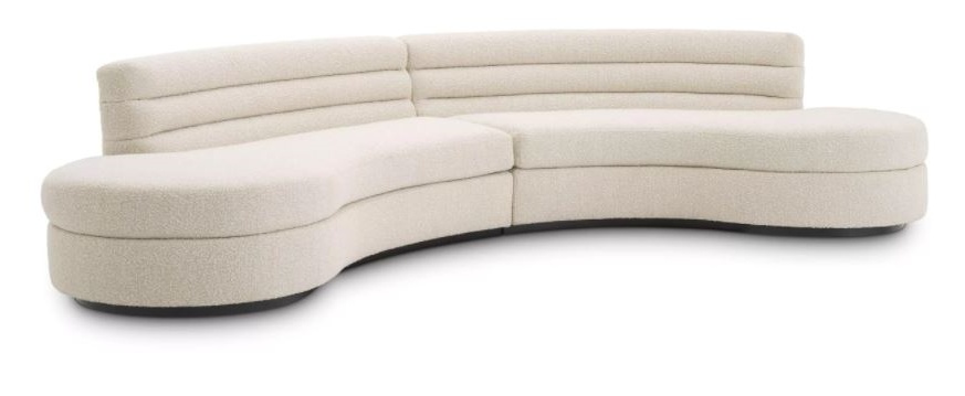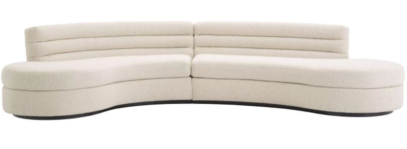 Luonnonvalkoinen bouclé-kangas tuo sohvaan pehmeyttä, mukavuutta ja ajattoman tyylin, joka tekee istumisesta erityisen miellyttävää. Mänty, vaneri ja metalliset siksak-jouset takaavat tukevan ja pitkäikäisen rakenteen, joka kestää käyttöä vuosikausien ajan.